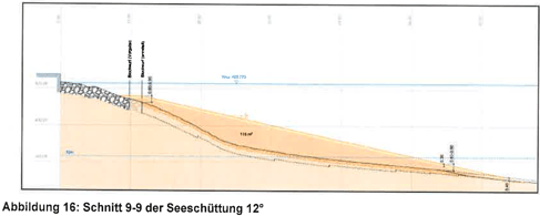 Abbildung 2b. Profil der geplanten Seeuferschüttung: Sie liegt im steilen Seeufer unter dem Flachwasserbereich.