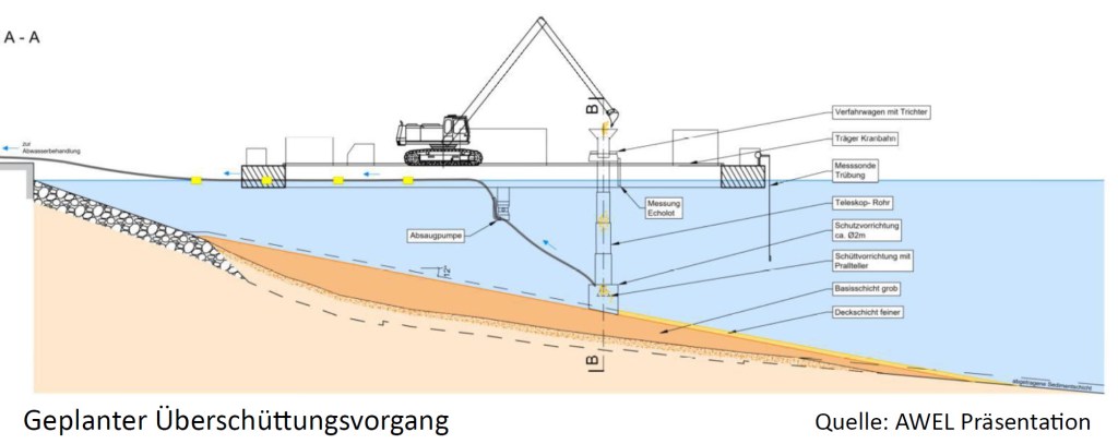 Die Vorgaben des Bundesamts für Umwelt zur Sanierung von Schwermetallaltlasten sind eindeutig: In der BAFU-Vollzugshilfe Belastete Standorte und Oberflächengewässer steht auf S. 50: «Eine Überdeckung (im Sinne einer Sicherung der belasteten Sedimente durch «aktives» Überschütten) ist nicht zulässig».