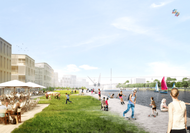 2 Namentlich sichert er öffentlich wirksame Nutzungen wie Gewerbe-, Gastronomie-, Kultur- und Freizeitnutzungen, die eine ganzjährige Belebung des Areals sicherstellen und das Seeareal zu einem lebendigen Quartier machen.