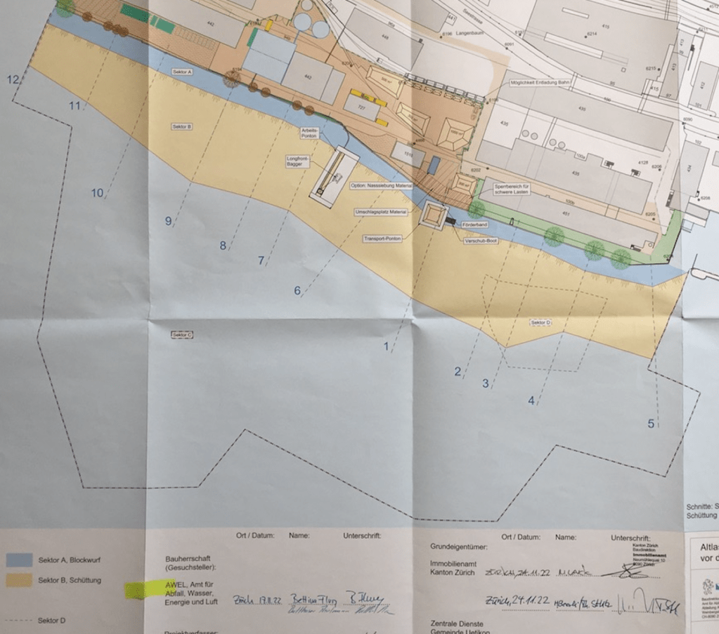 Die Lobby und eine Gruppe Privatpersonen mit Seebezug haben eine Einsprache gegen die Konzessionsbewilligung eingereicht. Wir haben eine Rechtsanwältin engagiert und wir waren im intensiven Gespräch mit dem AWEL. Wir sind überzeugt, dass die gewählte Variante aufgrund der vorliegenden Daten und Messwerte nicht gerechtfertigt und kaum bewilligungsfähig ist, und dass nochmals Alternativarianten geprüft werden müssen. Die hier präsentierten Graphiken und Zitate sind alle aus Quellen des AWEL.
