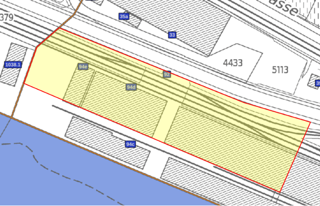 Aufgrund all dieser Erwägungen machen sich die Initianten für ein dichtes Quartier am See stark, das sich an der Variante Mini B orientiert, und beantragen der Gemeindeversammlung das in Abbildung 1 näher bezeichnete Areal in der revidierten Zonenordnung zur WG zuzuteilen und mit einer Dichteziffer 6.0 zu versehen. Die WG 6.0 ist im Zonenplan so zu beschreiben, dass die Gebäudehöhe von 13.5 m neben dem Park nicht überstiegen wird.